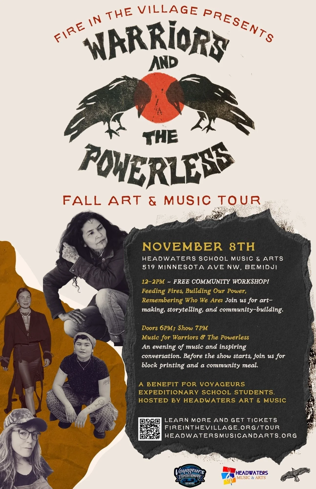 Join arts and culture collective Fire in the Village for a creative community gathering to feed our fires of inspiration, build our power, and remember who we are. This event is co-hosted by Headwaters Music & Arts and is a benefit for Voyageurs Expeditionary School students to support music and art education!
